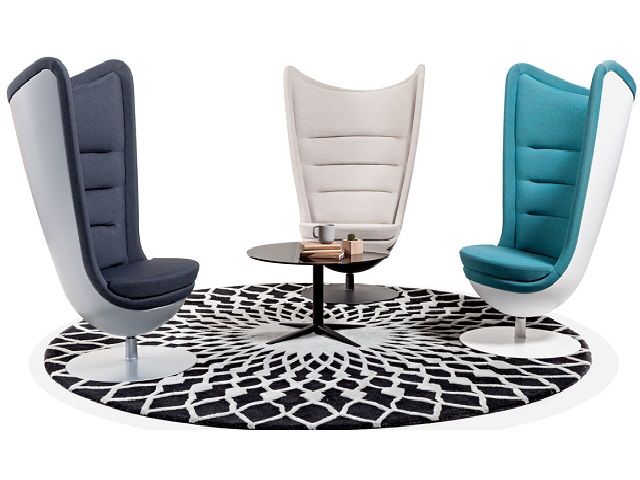 Diseño envolvente. Ideado como un elemento icónico dentro de la oficina, Badminton es una especie de trono que impresiona por sus dimensiones y forma.